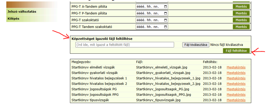 Igazolásként az alábbi dokumentumok scannelt vagy fényképes formáját kell ez eTitkár rendszerbe feltölteni a 2. Képzettségek oldalra:
